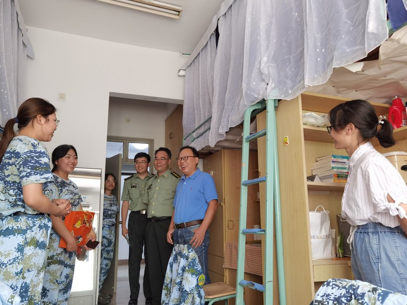 走访过程中,胡书记和沈书记同新生们展开了热情交谈,殷切关心同学们军训中的身体状况,询问同学们对大学生活的适应情况,了解同学们国庆假期的计划安排,提出具有针对性的疫情防控措施。同学们向两位书记介绍了自己的生活状态和对未来生活的期待,并认真听取了书记们的建议。最后,学院领导们一同为新生送上月饼礼盒,并表达了学院对学生的祝福,鼓励同学们积极适应大学生活。