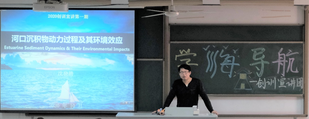 沈骁腾老师先向同学们介绍了其主要学习经历和河口海岸水动力及泥沙研究、海岸带微塑料污染与控制等研究方向,再向同学们提出来许多创训期间应该注意的问题,和将要收获的能力,激励同学向科研前进。