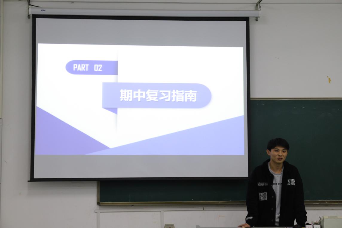 随后,班级学习委员冯基恒向同学们分享期中复习经验,指导同学们复习概率论及理论力学的基础知识,鼓励同学们认真复习、沉着应试。