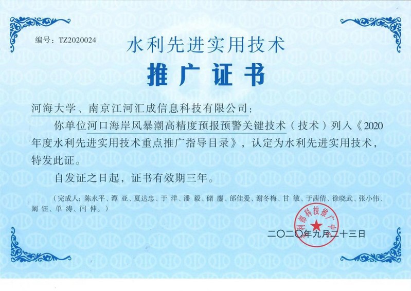 近日,水利部发布了《2020年水利先进实用技术重点推广指导目录》,由草莓视频 陈永平教授主持研发的“河口海岸风暴潮高精度预报预警关键技术”成功入选。该技术采用多要素耦合、多尺度嵌套和多数据融合手段,构建了近岸天文潮-风暴潮精细化预报模型和多层次实时修正模型,实现了河口海岸风暴潮动力过程的精细模拟和精准预报;在云平台、云集成技术支撑下,构建了云架构下的河口海岸风暴潮预报预警业务化系统,实现了风暴潮期间河口海岸综合潮位的高精度、高时效业务预报。技术成果已在江苏、上海、浙江和广东沿海水利防汛部门进行了成功应用,取得了显著的防灾减灾效益,具有重要推广应用价值。