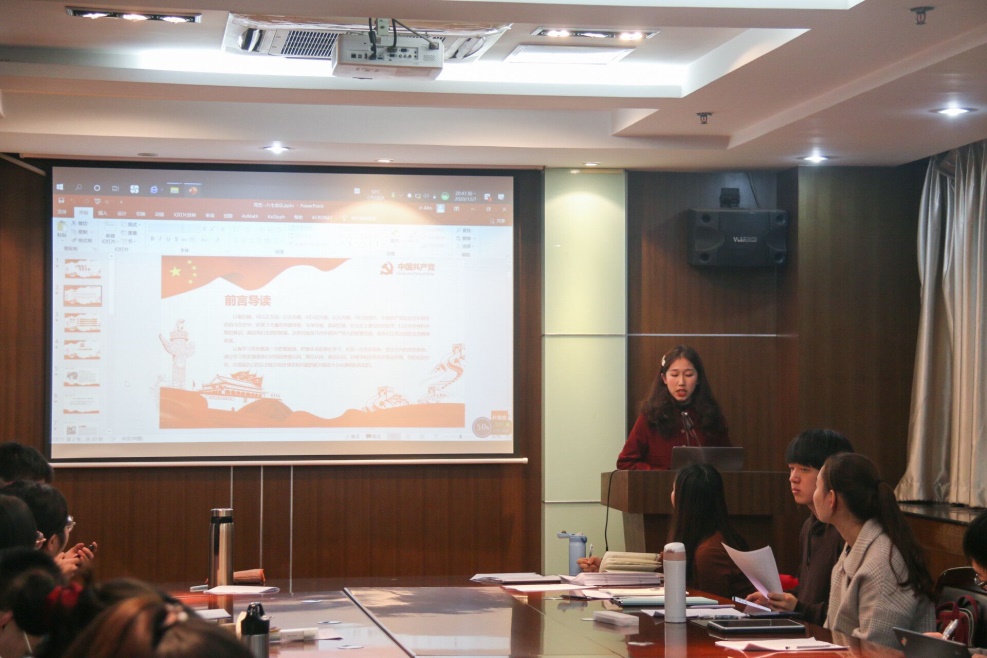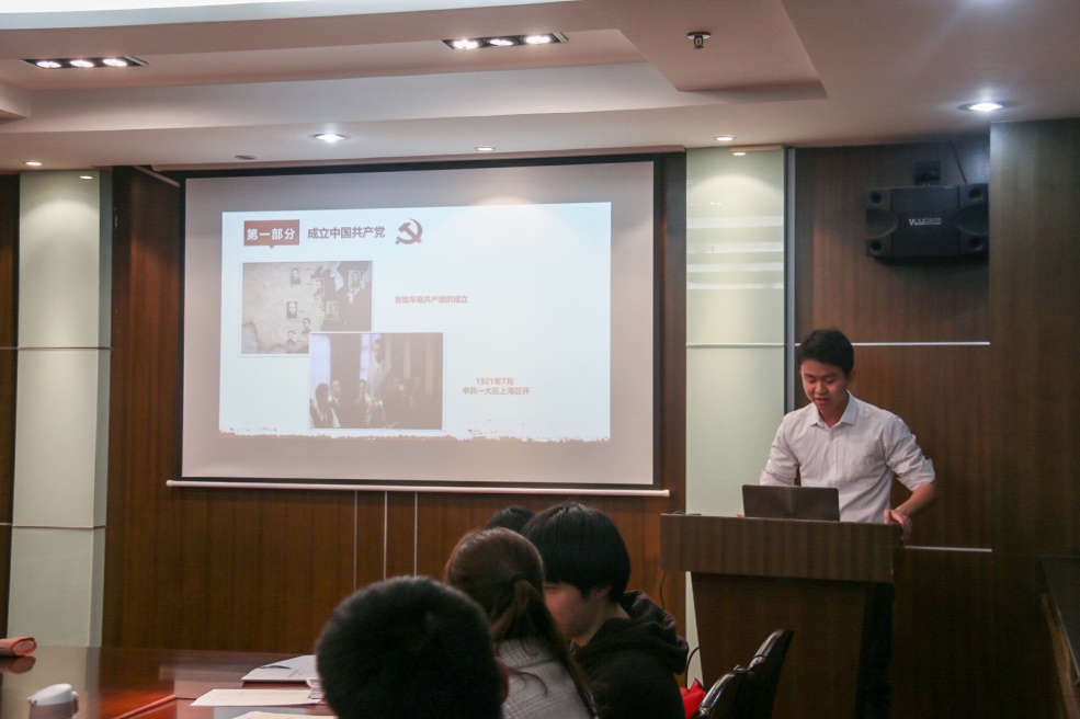 活动开始前,支部书记廖芳艺老师结合党史,为支部党员讲好中国故事理清“四史”逻辑。支部副书记张哲等四位学生党员依次上台向支部成员解读了不同时期党史。