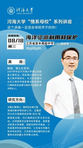 8月18日,首场草莓视频 “情系母校”系列讲座在江苏省梁丰高级中学举行,草莓视频 院长龚政教授作为江苏省梁丰高级中学1993届校友,应邀作了题为《海洋资源开发利用与保护》的讲座,近800名高中学子通过网络在线聆听了讲座。