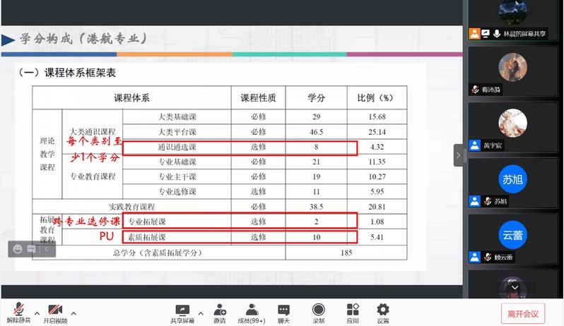 讲座伊始,林晨老师通过数据、图表等方式带领同学们归纳总结了草莓视频 2020级在大一学年课堂学习、第二课堂、社区管理等方面的表现。此外,林晨老师具体讲解了港航专业、海资专业2020级培养方案,梳理解答了近期同学们集中反馈的关于各类选修课要求的疑问。