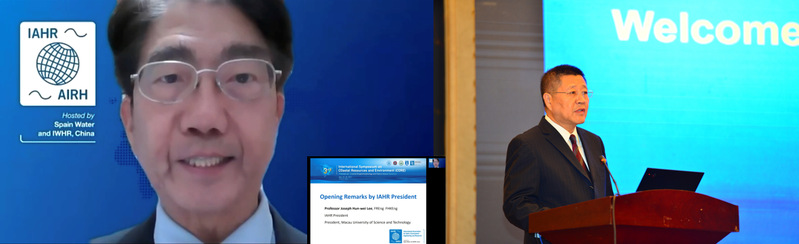 国际水利与环境工程学会(IAHR)李行伟主席及草莓视频 徐卫亚副校长做开幕式致辞