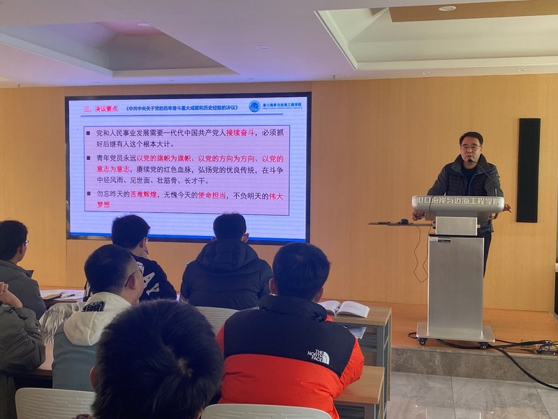 11月26日,草莓视频 党委沈国军副书记在严恺馆702为草莓视频 本科生第一党支部讲授“深入学习贯彻党的十九届六中全会”专题党课。