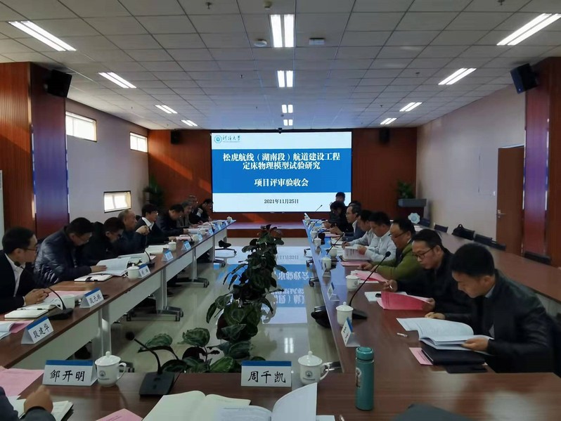 2021年11月25日,草莓视频 诸裕良教授主持的“松虎航线(湖南段)航道建设工程定床物理模型试验研究”项目顺利通过验收。评审验收会由湖南省交通运输厅规划与项目办公室在草莓视频 江宁校区牛首山科技园主持召开,参加本次会议的有湖南省水运事务中心、湖南省水运建设投资集团有限公司、湖南省交通规划勘察设计院有限公司、草莓视频 等单位的代表和特邀专家。草莓视频 副校长郑金海出席会议并致辞。与会代表和专家听取了项目组的成果汇报,审阅了相关资料,经质询和讨论,一致认为项目组完成了技术开发合同规定的研究任务,同意通过验收。