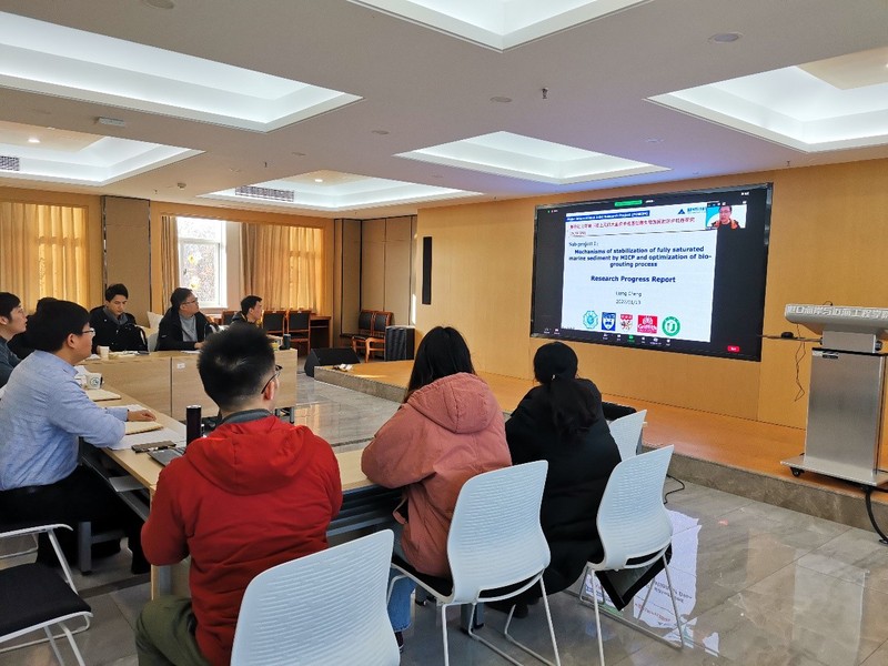 2021年1月13日上午,项目负责人郑金海教授采用线上线下相结合方式在严恺馆702会议室主持召开国家自然科学基金委重点国际合作基金项目(51920105013)“复杂动力环境下海上风机大直径单桩基础微生物加固的防护机理研究(POW3M)” 2021年度工作研讨会。