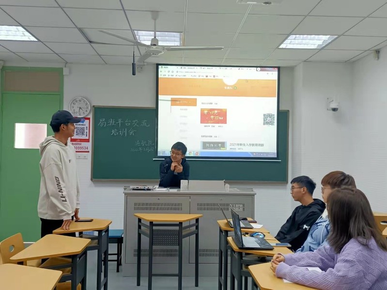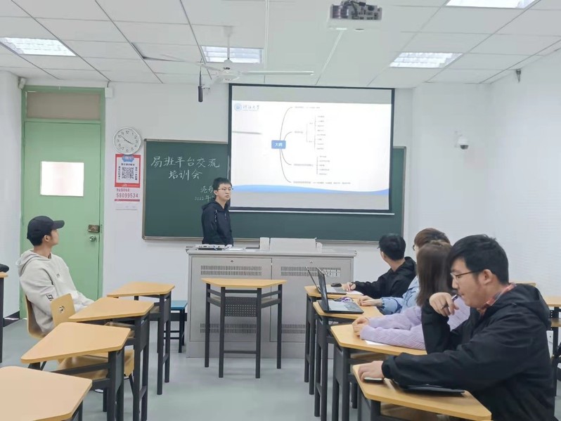 张晓东围绕校级易班工作站的组织架构、易班管理、公共管理平台、轻应用快搭平台、易班优课等5个方面进行介绍,通过教学指导和现场操作,帮助院级易班工作站的成员更直观地学习易班各项功能的操作方法。教学后,草莓视频 易班工作站的成员们就工作中遇到的问题和想法与张晓东、毛润宇交流。