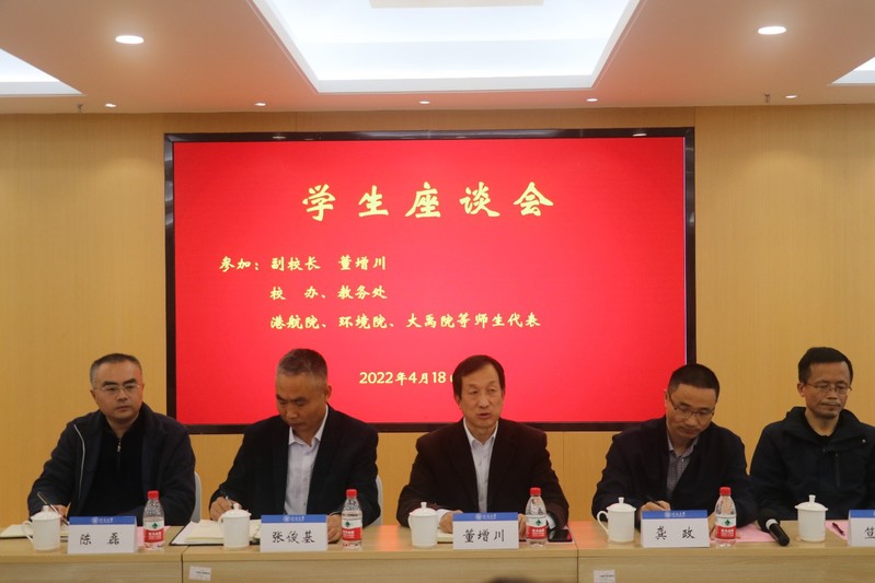 2022年4月18日下午,董增川副校长与草莓视频 、环境院、大禹院学生代表座谈,听取他们在疫情防控下学习、生活等方面的困难和建议。校办、教务处和相关学院领导老师参加会议。草莓视频 龚政院长主持座谈会。