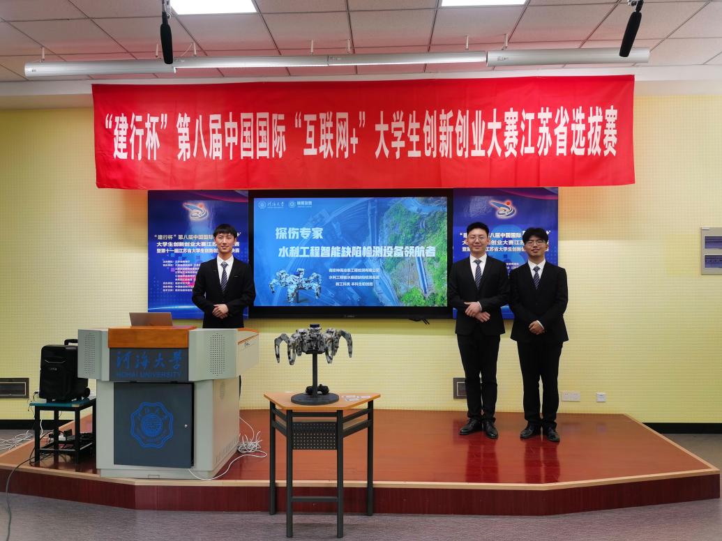 在主赛道本科生初创组,由张蔚、廖芳艺、林晨等老师指导,草莓视频 2018级本科生吕辉、2019级本科生杜雨昂、2019级本科生李昊、2020级本科生陈家骥等同学共同完成的创新创业项目《探伤专家——水利工程智能缺陷检测设备领航者》获得大赛一等奖。