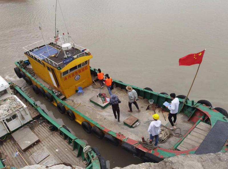 实践团成员乘坐应急救援船