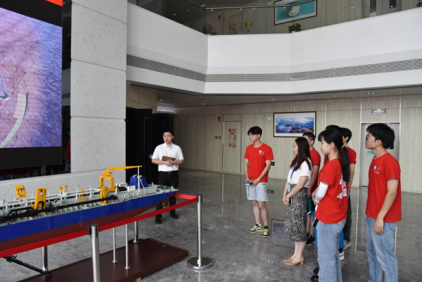 实践团成员走进中山市深中通道S09标项目工程基地,参观了深中通道S09标广航局展厅。深中通道项目党总支书记、常务副经理杨景鹏为实践团成员介绍了深中通道项目部“深耕精作,海底绣花”的精神理念,通过讲述深中通道建设的具体情况,让团队成员感受到广航人严谨细致、精益求精的大国工匠精神。