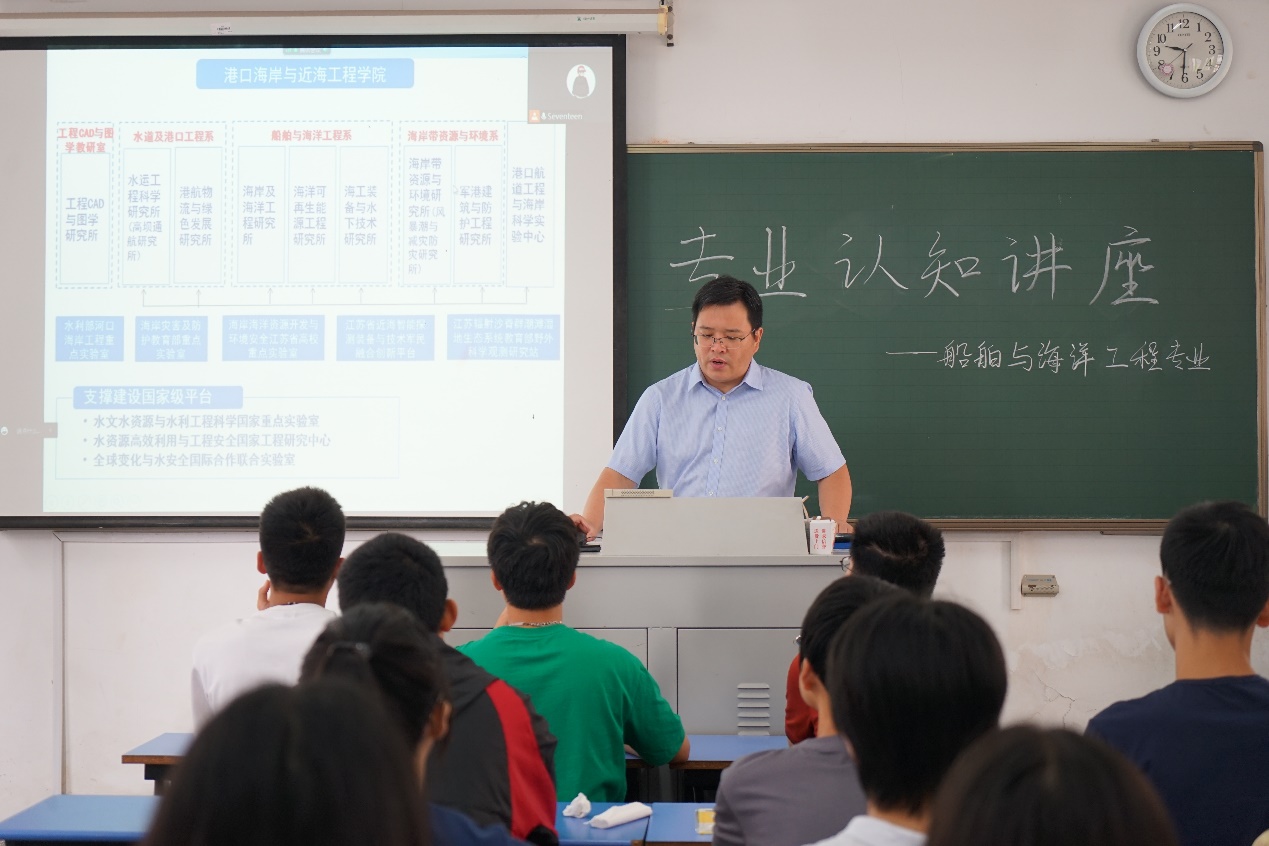 在江宁会议中心,张蔚教授以洋山四期自动化码头和港珠澳大桥为例,从港航专业设置和发展沿革、专业内涵与特点、主要学习内容、毕业去向与国际化等四个方面,指出学院强大的社会影响力、港航专业在社会发展中发挥的重大作用和当今社会对港航人才的迫切需求。在提问环节,张蔚教授耐心细致地回答了同学们关于行业发展、科研竞赛、就业去向、留学深造、交叉学科等方面的问题,强调教育的本质是提升思考和学习能力,希望同学们能够提升学习的规划性和目标感,注重日常积累,培养独立思考能力,成为全面发展的时代新人。
