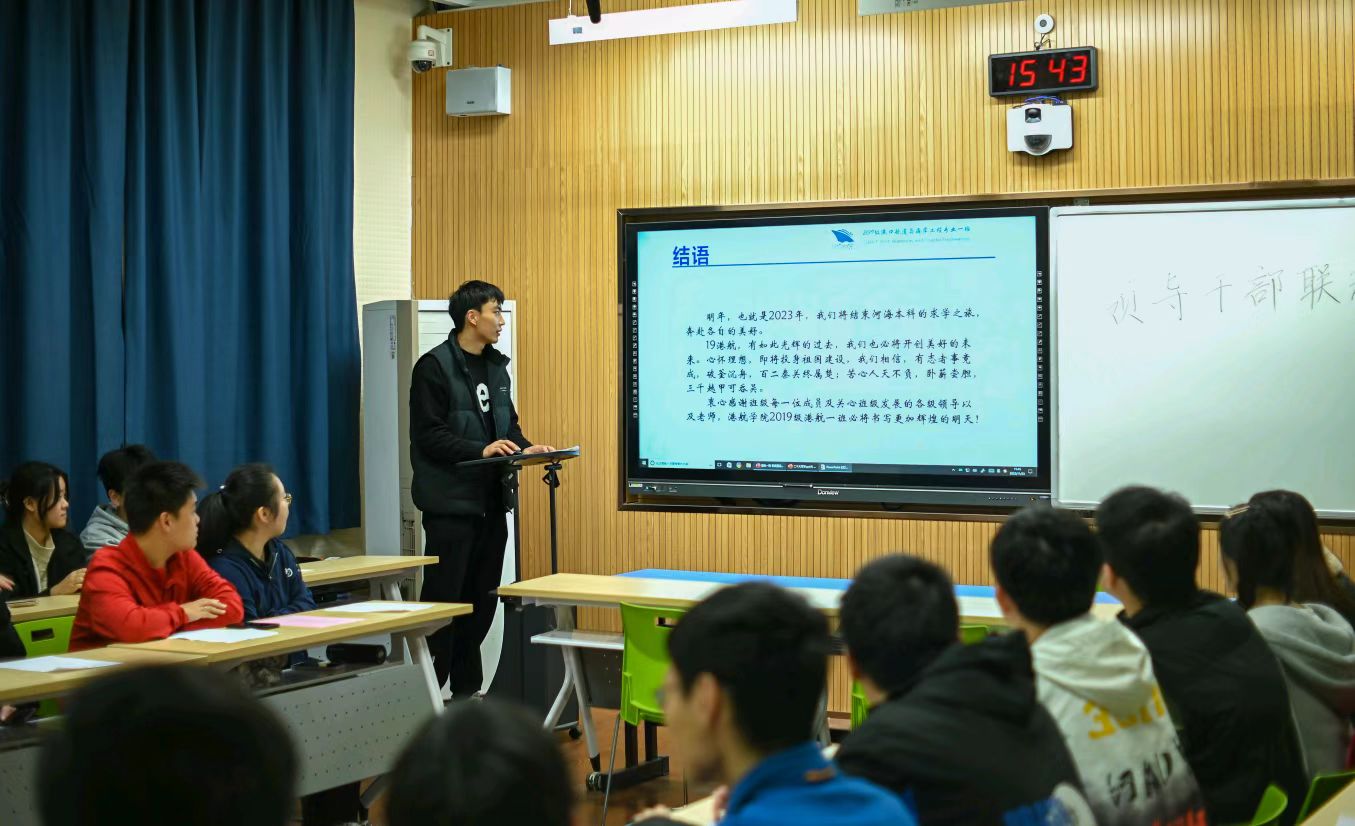 11月23日下午,2019级港航1班召开“学习贯彻二十大,毕业就业创青春”主题班会。校党委常委、党委统战部部长、党委办公室主任朱宏亮、草莓视频 党委书记张俊基、班导师及辅导员出席活动。班会由班长季一鸣主持。