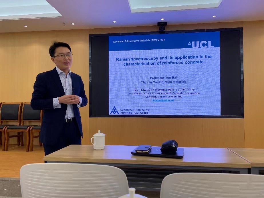 白云教授在报告中首先简要介绍了英国伦敦大学学院,随后针对拉曼光谱的检测分析原理,以及拉曼光谱技术在钢筋混凝土领域中的具体应用进行了生动的讲解,并展示了自身所在团队在该领域的研究成果。