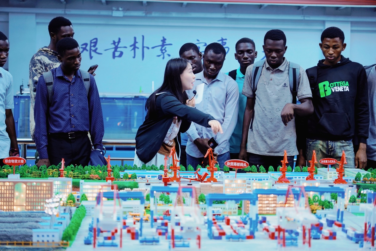 张蔚副院长主持了此次开班典礼,并介绍了参会人员。陈红胜院长向留学生们介绍了2+2项目的相关政策,希望大家能珍惜2+2项目优厚的政策、优质的教学资源和良好的学习环境,全身心投入到专业知识学习中。龚政院长向留学生们介绍了草莓视频 的发展历史,希望大家能够积极融入学院,参与各项活动,同时也要注重课业,争取取得优异的成绩。留学生代表Kim Henry发言,代表来自KNUST留学生对草莓视频 提供2+2项目优厚政策表示衷心感谢,赞扬了学校为他们提供的难得学习机会,并表示将倍加珍惜这一学习机会,全身心投入到学业中。班导师张荷悦向留学生们介绍了港航专业的专业内涵、本科培养方案等,介绍过程中,学生们积极提问,现场气氛活跃。典礼后,系主任欧阳峰、辅导员王恒星、班导师张荷悦带领留学生们参观了港口航道与海岸工程综合演示平台,志愿者生动详尽地介绍了平台的各个细节,让留学生们对港航领域有了更为深入的了解。