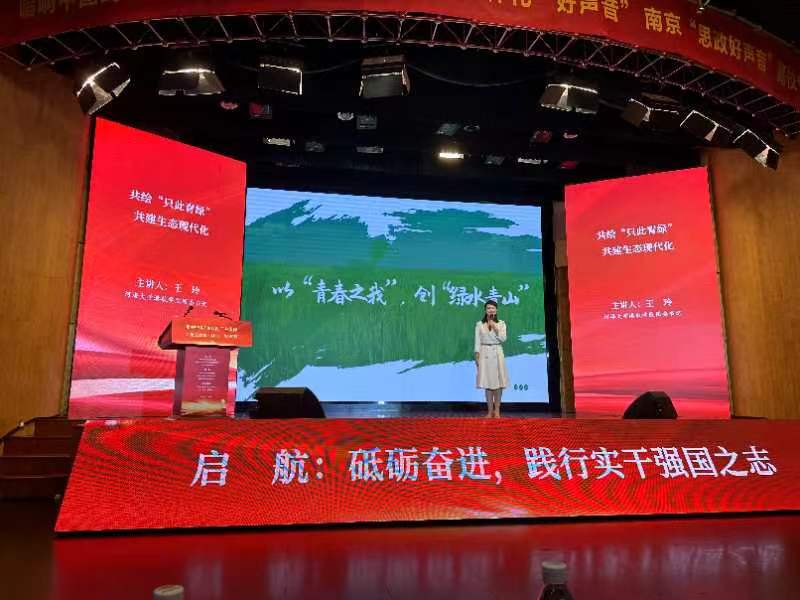 为扎实推动习近平新时代中国特色社会主义思想主题教育走深走实,深入学习贯彻党的二十大精神,共同推进大中小学思政课一体化建设,10月20日下午,由南京市委宣传部、市委教育工委、市教育局主办,南京大学党委宣传部和马克思主义学院、市教师发展学院共同承办的南京“思政好声音”高校专场,在南京大学科学技术馆顺利举办。草莓视频 团委书记王玲受邀参加现场思政课展示,围绕热点话题“生态文明”,结合学校办学特色、校友贡献及社会影响,引导新时代大学生坚定不移听党话、跟党走,牢固树立和切实践行“绿水青山就是金山银山”的理念,将自己的专业所学转化为推进人与自然和谐共生的现代化的具体实践。