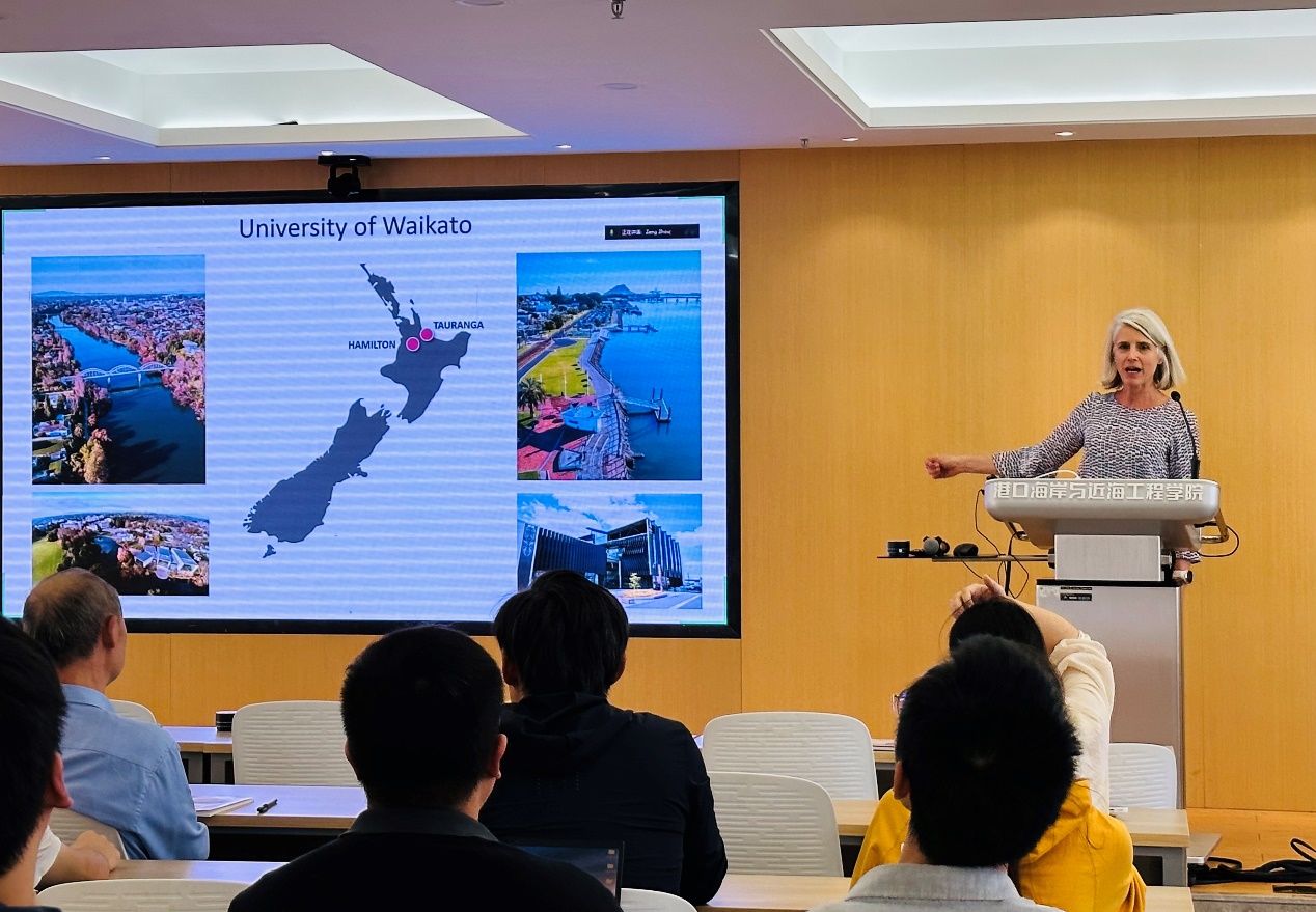 2023年10月17日下午,新西兰皇家科学院院士、怀卡托大学Karin Bryan教授和怀卡托大学海洋科学研究主任Conrad Pilditch教授应江苏省海岸海洋资源开发与环境安全重点实验室邀请在严恺馆702学术报告厅分别作了题为“Using Remote Sensing to Scale up Present and Future Estuarine Primary Productivity”和“Interacting stressors erodes ecological resilience in coastal ecosystems”的学术报告。学术报告会由周曾教授和陈欣迪副教授主持。
