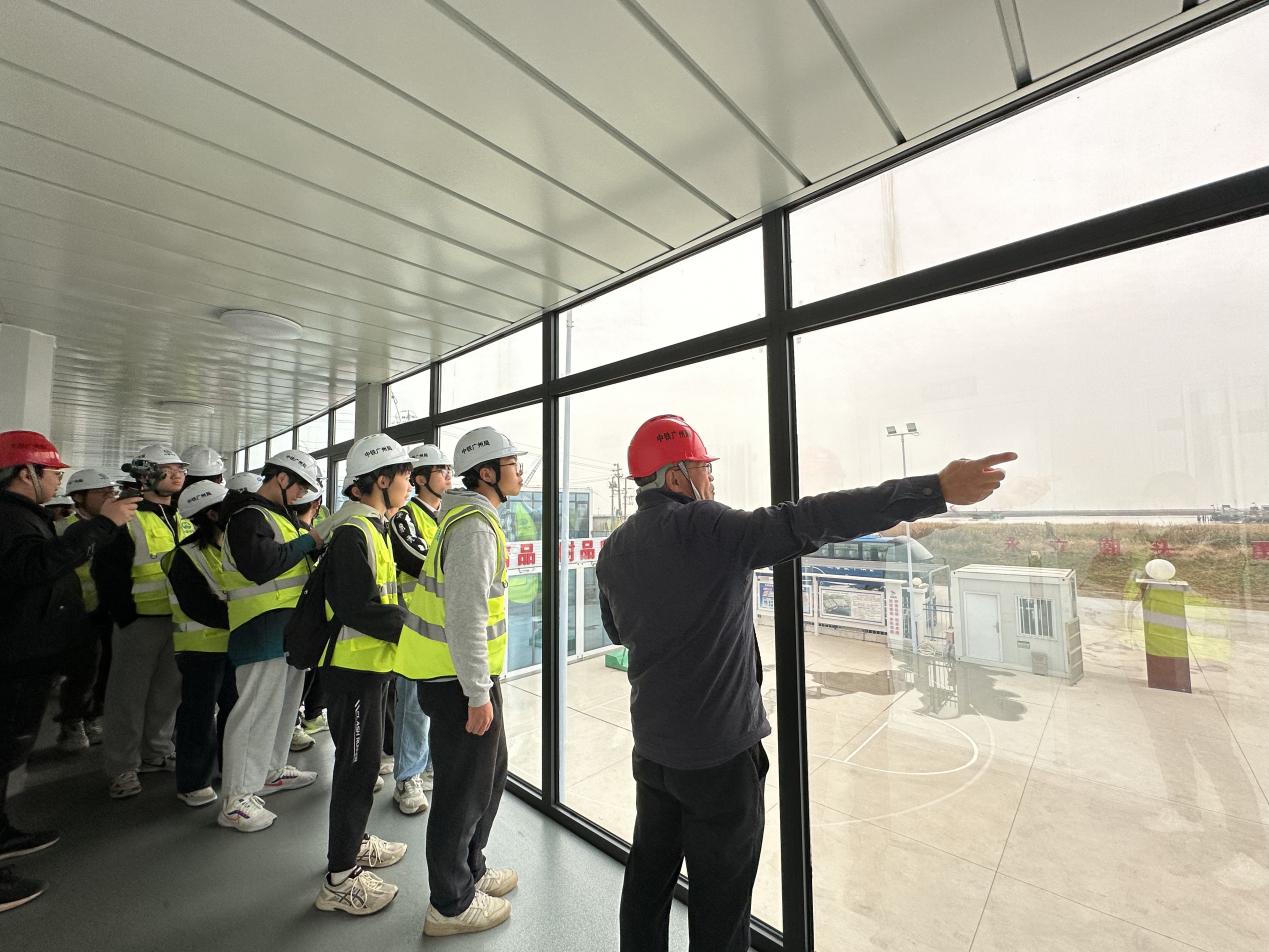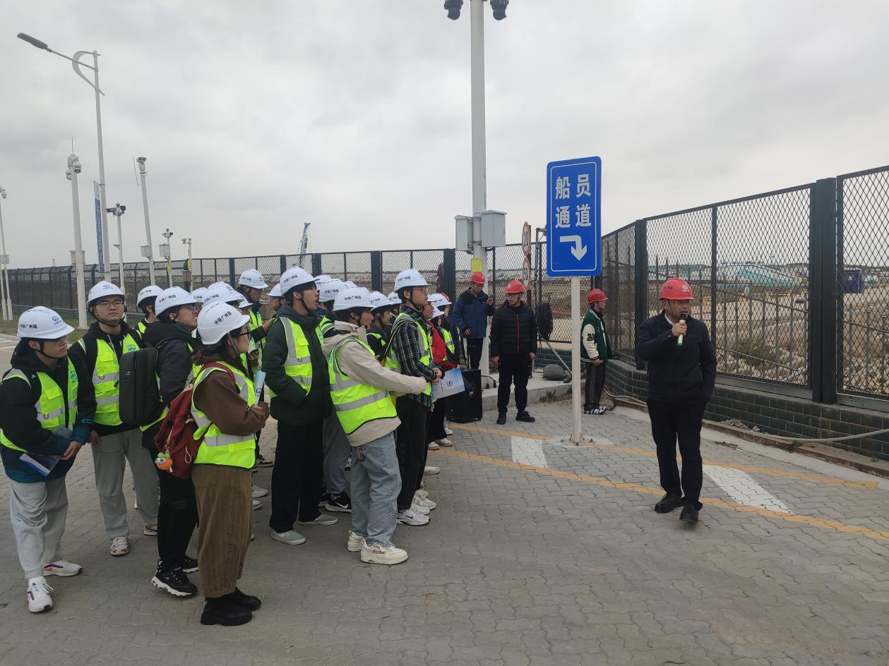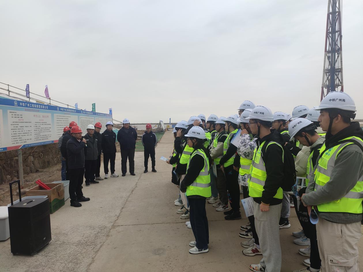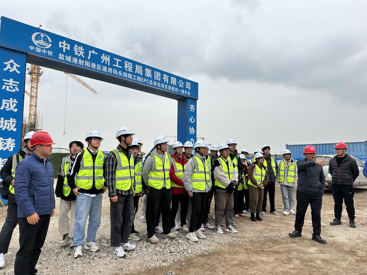 2023年11月26日,草莓视频 组织开展第3期“走访名企 接轨职场”就业实践专项活动,中铁广州局港航公司人力资源部经理任刚、项目经理杨晓平、项目书记宾建帮、项目总工程师陈建阳、项目副经理赵晓磊、盐城港项目管理公司射阳港项目负责人张宏、设计代表宋德威等带领31名2022级本科生前往盐城港射阳港区通用码头四期工程,通过探访工程现场、参观项目部、观看宣传视频、听取项目介绍、座谈互动交流等形式,帮助师生认知企业基本概况与工程建设情况。草莓视频 辅导员顾钰恒、林晨带队。