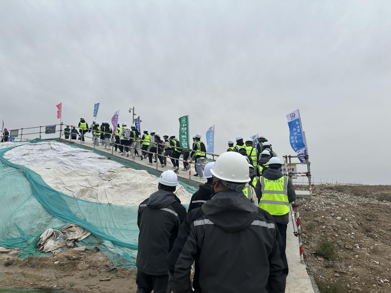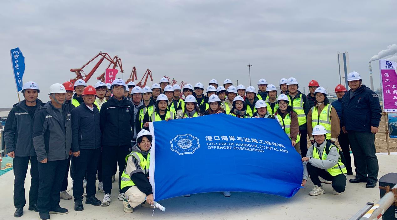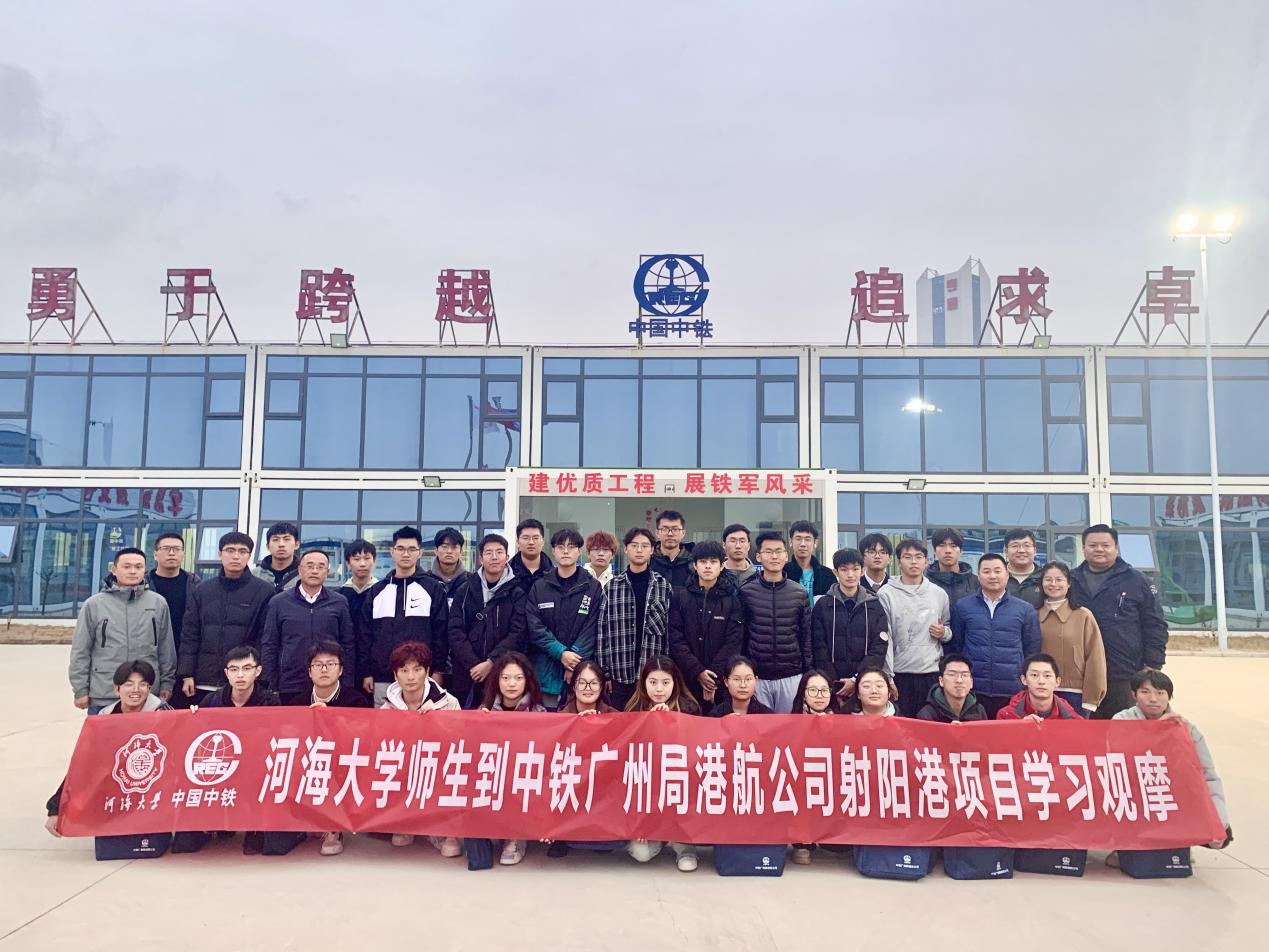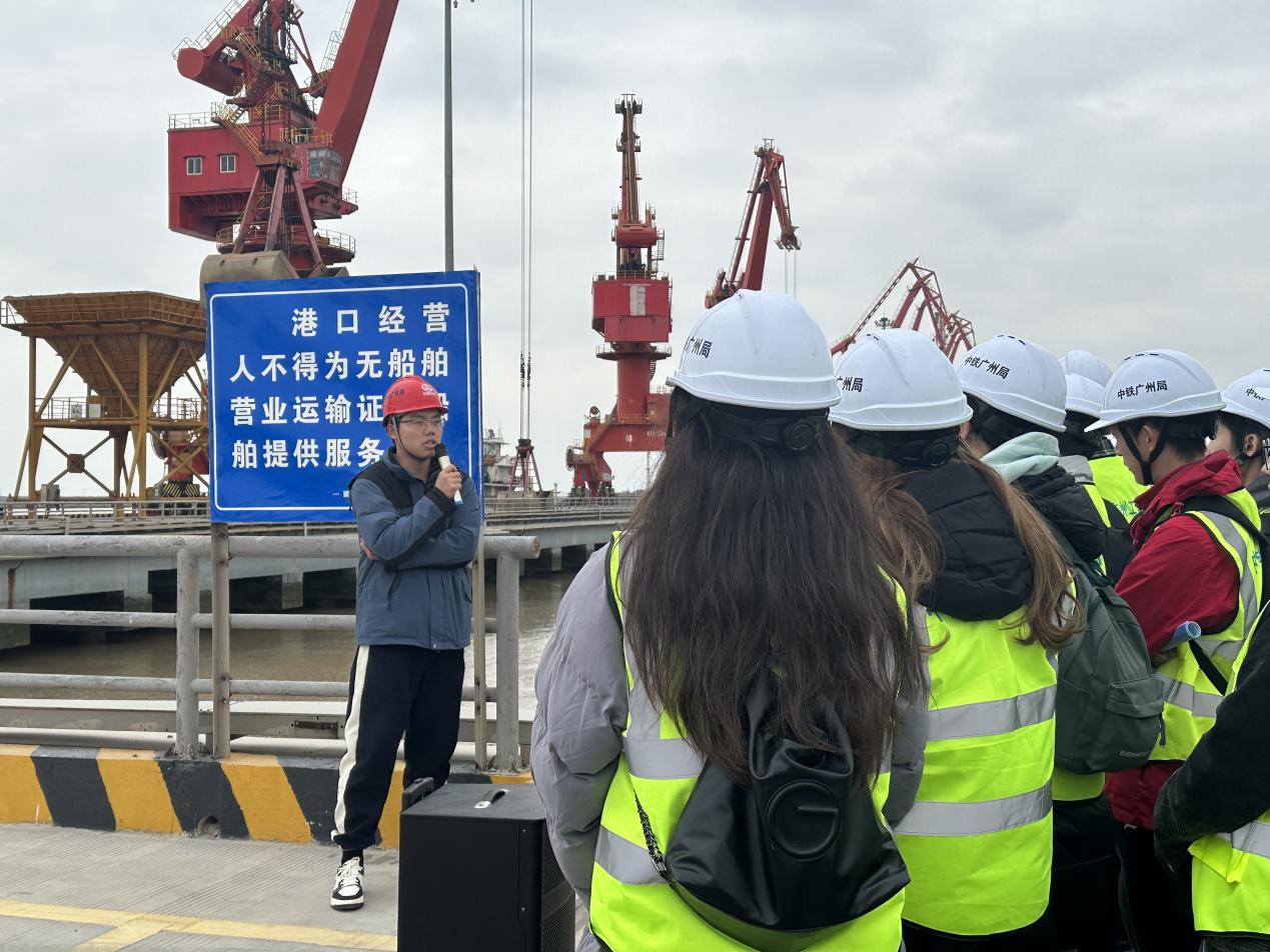 2023年11月26日,草莓视频 组织开展第3期“走访名企 接轨职场”就业实践专项活动,中铁广州局港航公司人力资源部经理任刚、项目经理杨晓平、项目书记宾建帮、项目总工程师陈建阳、项目副经理赵晓磊、盐城港项目管理公司射阳港项目负责人张宏、设计代表宋德威等带领31名2022级本科生前往盐城港射阳港区通用码头四期工程,通过探访工程现场、参观项目部、观看宣传视频、听取项目介绍、座谈互动交流等形式,帮助师生认知企业基本概况与工程建设情况。草莓视频 辅导员顾钰恒、林晨带队。
