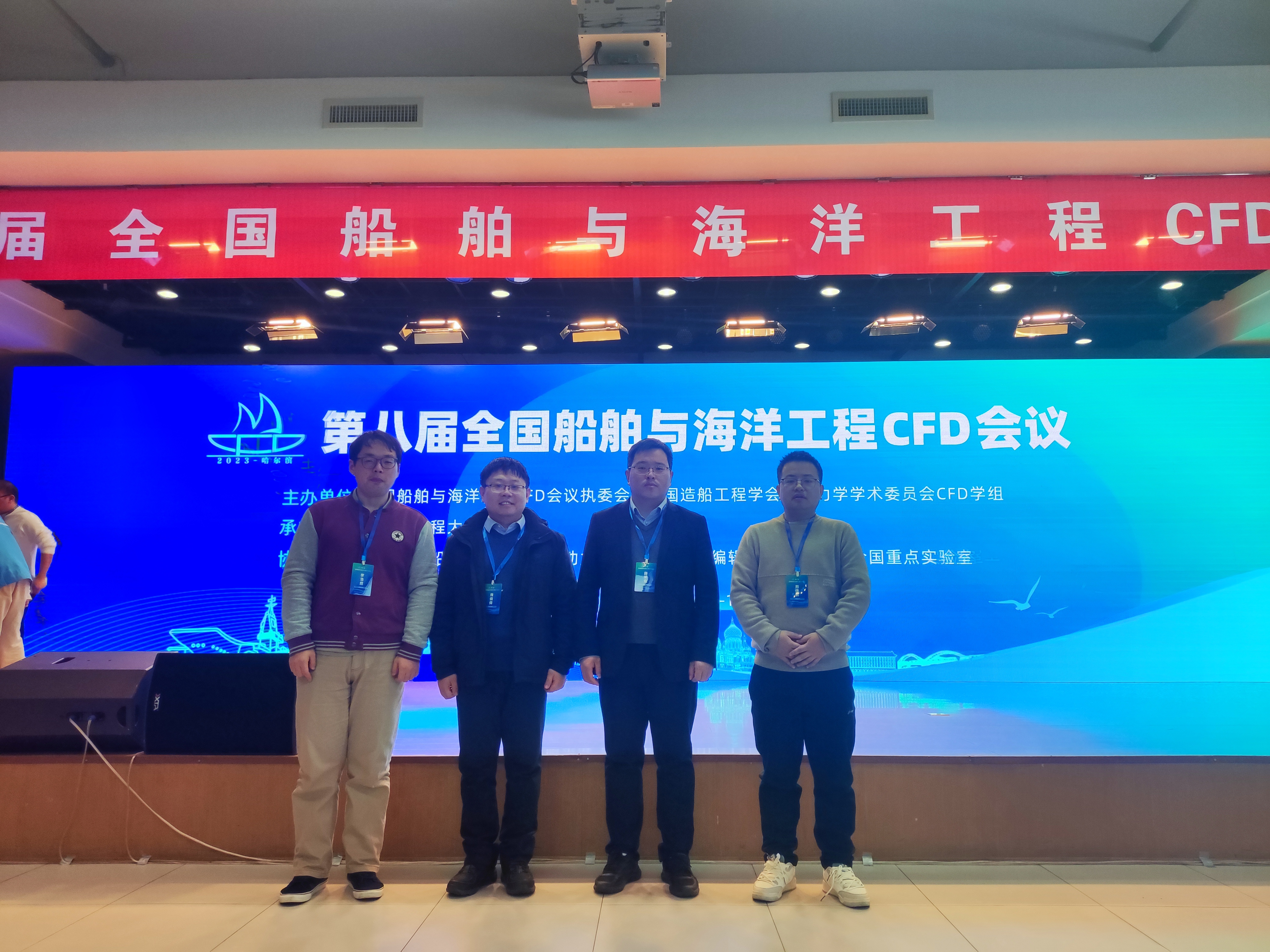 2023年11月10日-13日,草莓视频 教师赴哈尔滨参加了第八届全国船舶与海洋工程CFD会议。本次会议由全国船舶与海洋工程CFD会议执委会、中国造船工程学会船舶力学学术委员会CFD学组主办,哈尔滨工程大学承办,《中国造船》、《水动力学研究与进展》编辑部和水动力学全国重点实验室共同协办。会议旨在搭建船舶与海洋工程CFD数值方法研究、自主软件研发、以及在船舶与海洋工程复杂流动中的模拟应用等在内的学术交流平台,促进国内船舶与海洋工程CFD方法、软件和应用研究的高质量发展。来自全国各高校、研究所、设计院、企业等40多家单位的专家教授、青年学者及研究生共430多人参加了本次会议。