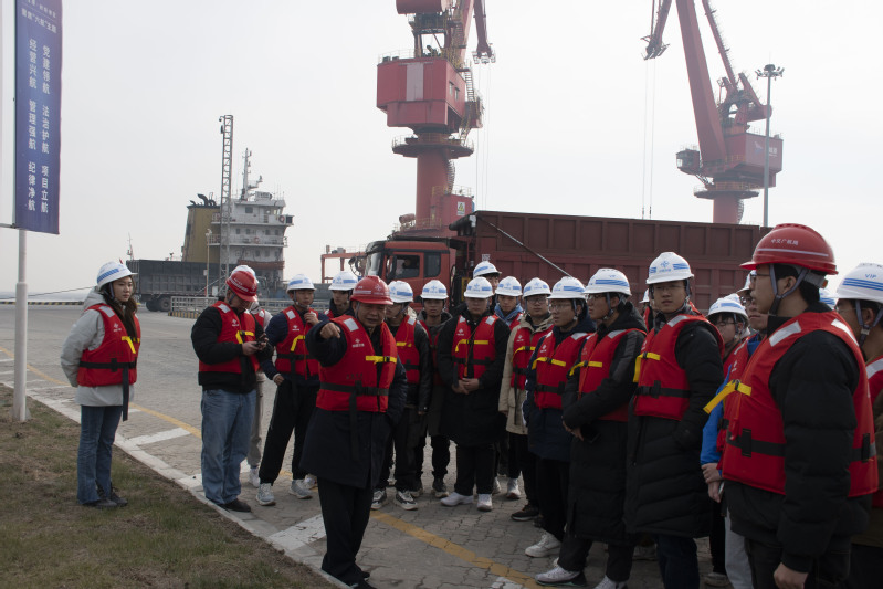 2023年12月26日,草莓视频 组织开展“走访名企 接轨职场”就业实践专项活动第5期,30余名23级本科生前往中交广州航道局盐城港射阳港区航道项目部和项目现场参观调研,通过观看宣传视频、探访工地现场、座谈互动交流等形式了解企业基本情况与工程建设情况。项目部书记毛晓翀热情接待来访学生。2023级辅导员廖芳艺带队。