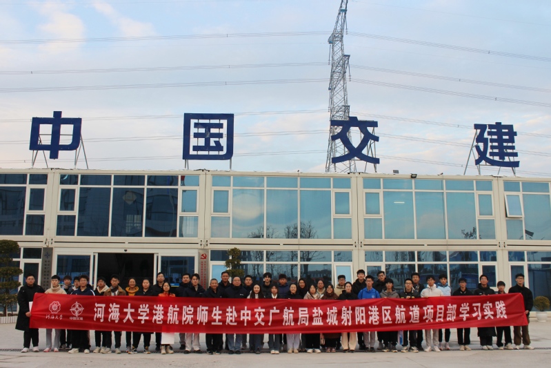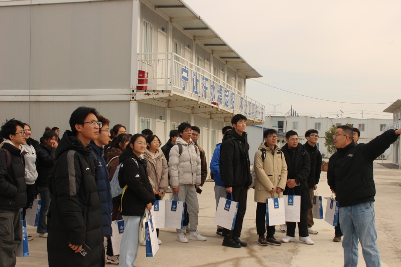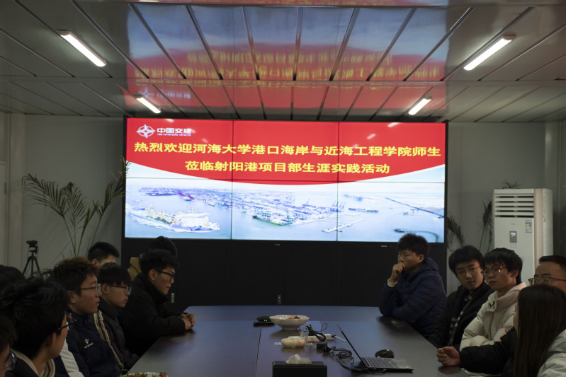 在中交广航局射阳港项目部党支部书记毛晓翀的带领下,到访师生参观了项目部党建会议室、测量部、工程部、调度室、休闲活动区等,了解项目部工作环境。毛书记简要介绍了各部门分工和基地基础设施建设。
