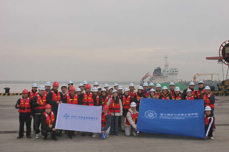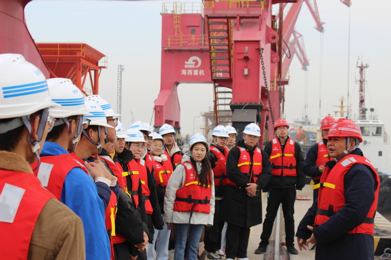 随后,草莓视频 师生前往射阳港区现场参观学习。项目部莫志芳总工程师为同学们介绍了高桩码头的施工与建设情况,就现场的码头吊机、海上浮标、海岸防护堤进行专业认知教育,着重介绍了绞吸船、抓斗船与耙吸船三类疏浚船的工作原理与优缺点,使同学们初步认识了疏浚工程现场。