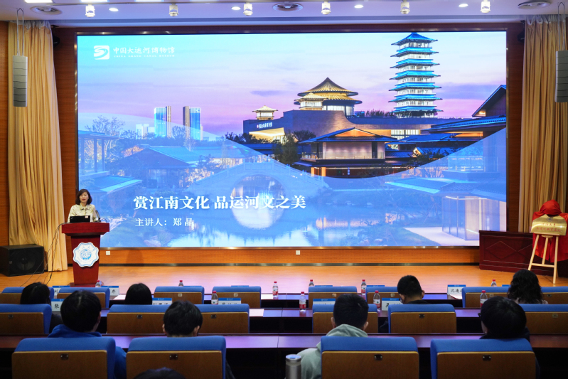 郑晶馆长在主题为“赏江南文化,品运河文之美”的主题讲座上,从大运河的历史文化、经济价值、生态环境、文化旅游入手,围绕江南运河文化,详细介绍了博物馆的场馆设置、特色展览、文化作用,深度诠释了江南文化及运河之美,致力于大运河文化的传承与创新。