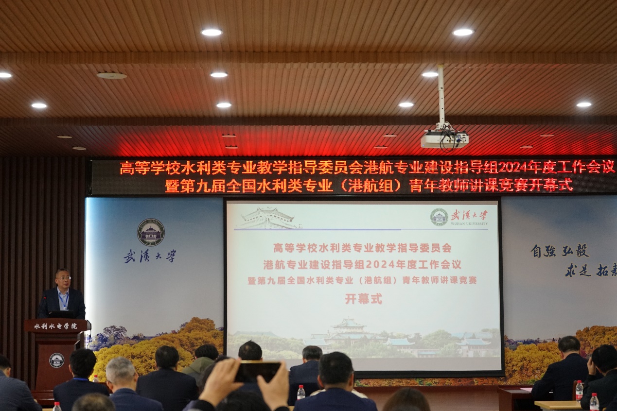 2024年3月23日,全国高等学校水利专业教学指导委员会港口航道与海岸工程专业建设指导组年度工作会议暨第九届水利类专业(港航组)青年教师讲课竞赛在武汉大学顺利举行,来自全国33所高校及2家出版社的百位余名专家学者和青年教师代表齐聚一堂,为师资队伍建设和人才培养出谋划策。武汉大学校党委副书记屈文谦教授,水利类专业教学指导委员会港航专业组组长、草莓视频 副校长郑金海教授出席开幕式并致辞,武汉大学水利水电学院副院长夏军强教授主持开幕式,水利类专业教学指导委员会港航专业组秘书长、草莓视频 草莓视频 副院长张蔚教授主持2024年度工作会议。