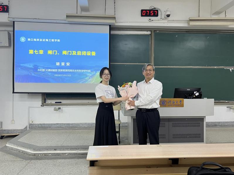 同时,胡院士还结合国家战略政策,探讨了水运、船闸相关的发展趋势。他指出,水运作为绿色、经济的运输方式,在国家新一轮的战略指引下正迎来新的发展机遇。当前水运和船闸领域仍有许多亟待解决的科学问题,这也为同学们日后提供了广阔的研究方向。他强调,未来的研究应更加注重智能化、环保和可持续发展,例如,智能船闸系统的开发、省水船闸的建设等,都将是该领域的重要研究方向。