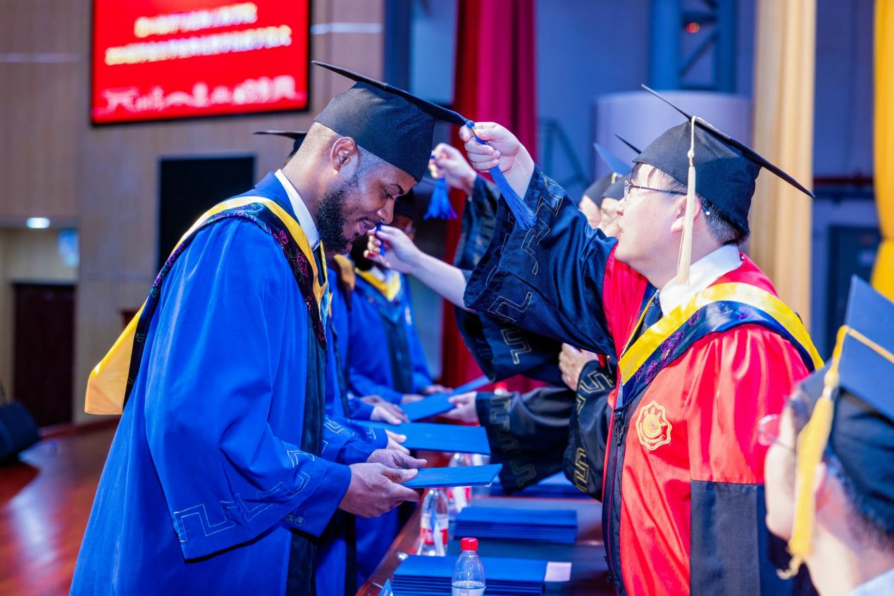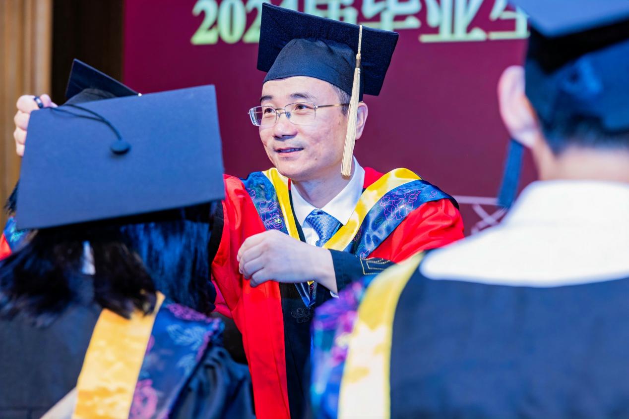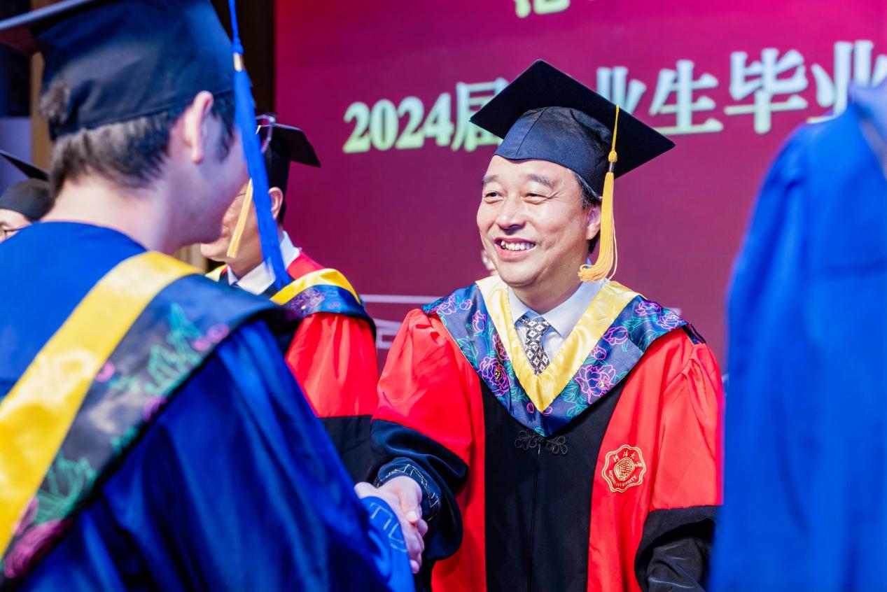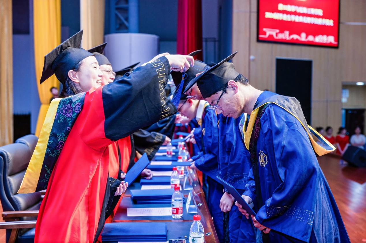 学院领导为全体2024届毕业生颁发学位证书并拨帽穗。