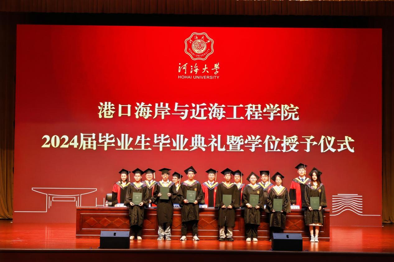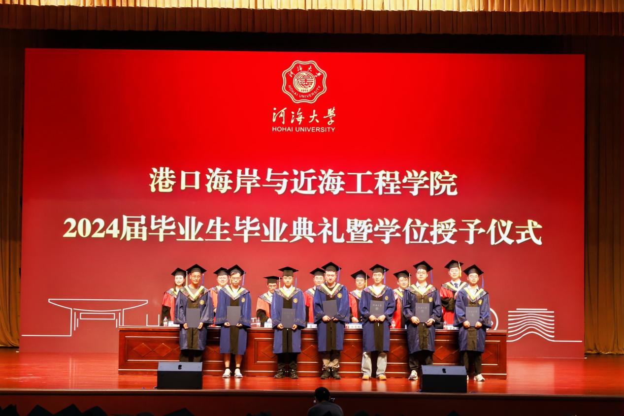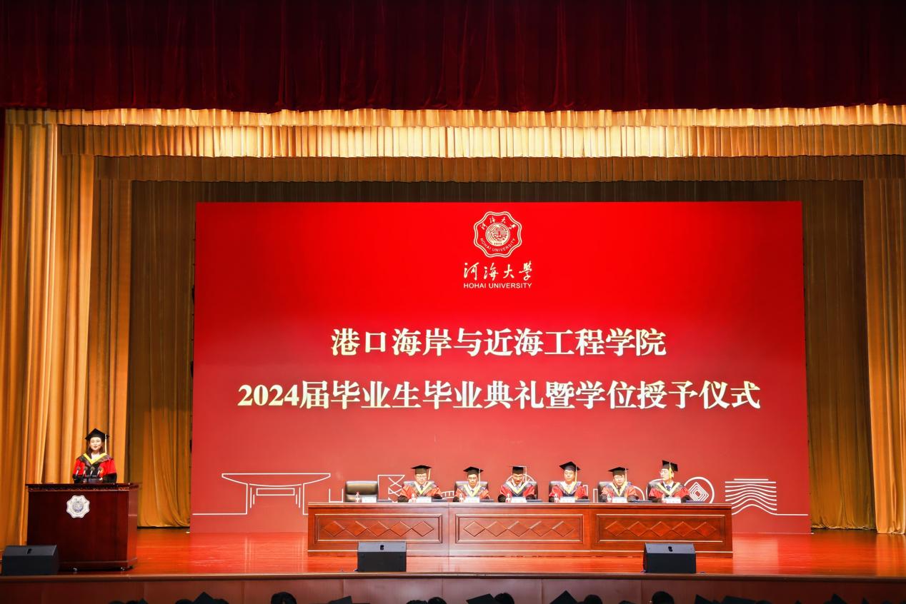 6月21日下午,草莓视频 2024届毕业生毕业典礼暨学位授予仪式在河海会堂隆重举行。典礼特邀中交第三航务工程局有限公司及分公司代表出席典礼,草莓视频 院长龚政教授向毕业生寄语,草莓视频 党委书记张雪刚,大禹学院副院长、党委副书记金光球,草莓视频 副院长张蔚、陈永平、管大为,各系所负责人、班导师代表、全体辅导员,2024届毕业生及部分家长代表参加典礼,典礼由草莓视频 党委副书记王玲主持。