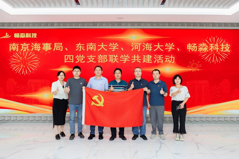 活动伊始,草莓视频 、南京海事局、东南大学、畅淼科技的四党支部代表共同参观了畅淼科技公司,并听取了畅淼科技智慧水运发展历程的介绍。随后,南京海事局装备信息处三级高级主办徐斌和四级主办刘梦阳详述了南京海事局智慧化管理业务及需求创新举措,东南大学信息科学与工程学院党委副书记兼副院长王婧菲和副院长兼党支部书记安良介绍了信息学科发展及人才培养的历程,草莓视频 党委书记张雪刚、海岸建筑与防护工程研究所所长孔俊、党支部书记黄惠明分别介绍了港航学科建设及人才培养和党建科研协同创新的发展历程,畅淼科技董事长杨正详述了以人工智能技术为核心的智慧水运解决方案。同时,各党支部还就海事部门、高校及企业党建工作、科研创新的交互及特色等方面进行了热烈而深入的交流和座谈,共同表达了再接再厉、协同发展、联合创新的意愿。
