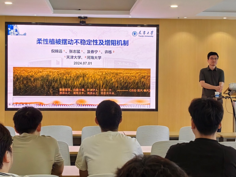 2024年7月1日上午,天津大学及春宁教授应草莓视频 船海学科邀请,在严恺馆702报告厅作了题为“柔性植被摆动不稳定性及增阻机制”的学术报告。学术报告会由薛米安教授主持。