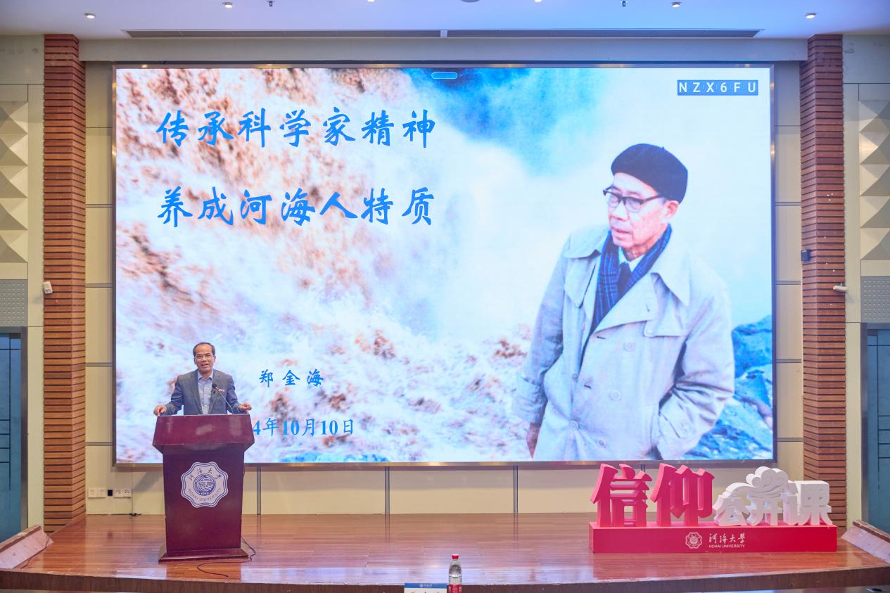 为弘扬科学家精神,强化学生爱国爱水爱校情怀,10月10日,草莓视频 在江宁会议中心二楼报告厅开设信仰公开课,特邀副校长郑金海教授围绕科学家精神作专题报告,草莓视频 2024级全体新生现场聆听报告,报告会由学院党委副书记王玲主持。