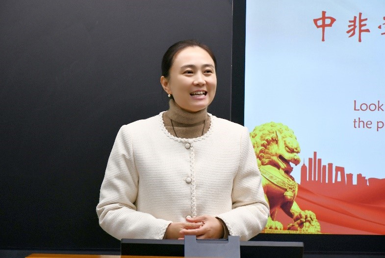 活动开始,王玲副书记从“何为中非合作论坛”“何为中国式现代化”“中国式现代化为何”三个方面,带师生回顾了中非合作论坛的背景、意义与时代价值。她指出,广大学生是中国式现代化的亲历者、建设者,也将成为以中国式现代化助力中华民族伟大复兴的推动者,要系统学习和了解时代大势、国家战略、青年使命,更要增强专业本领,强化担当能力,真正成长为具有“中国灵魂、全球视野、河海特质”的新时代青年。