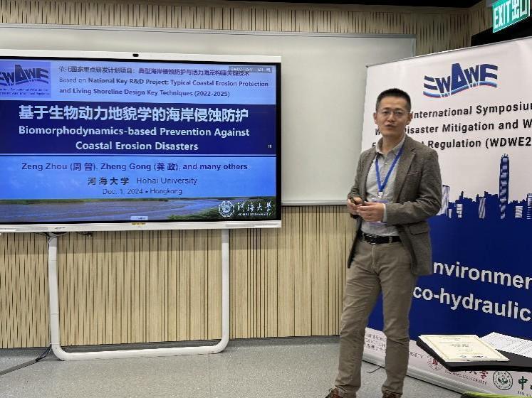 副院长陈永平教授作了题为Application of the LSTM Model to Predict Storm Tide at the Coast of Zhejiang Province, China的特邀报告,分享了利用机器学习进行沿海风暴潮预测的研究成果。周曾教授做了题为Biomorphodynamics-based Prevention Against Coastal Erosion Disaster的特邀报告,重点介绍了基于生物动力地貌学理论来防治海岸侵蚀的创新策略。