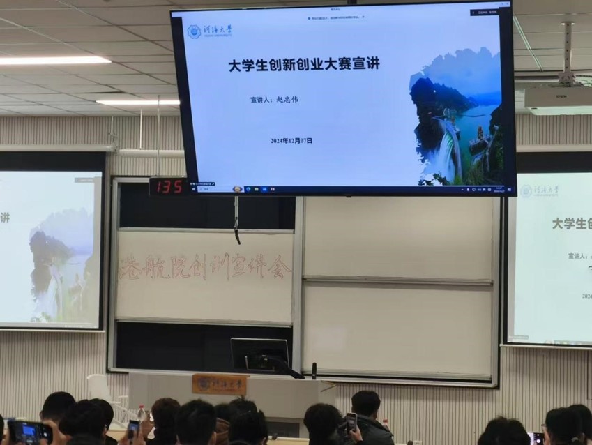 最后,张蔚教授围绕“为什么要开展大学生创训?”“怎么才能做好大学生创训?”“从大学生创训里获取什么?”三个问题阐述了大学生创训的意义,呼激励同学们在创训中发掘自身潜力,在创新创业实践中展现港航学子的风采。