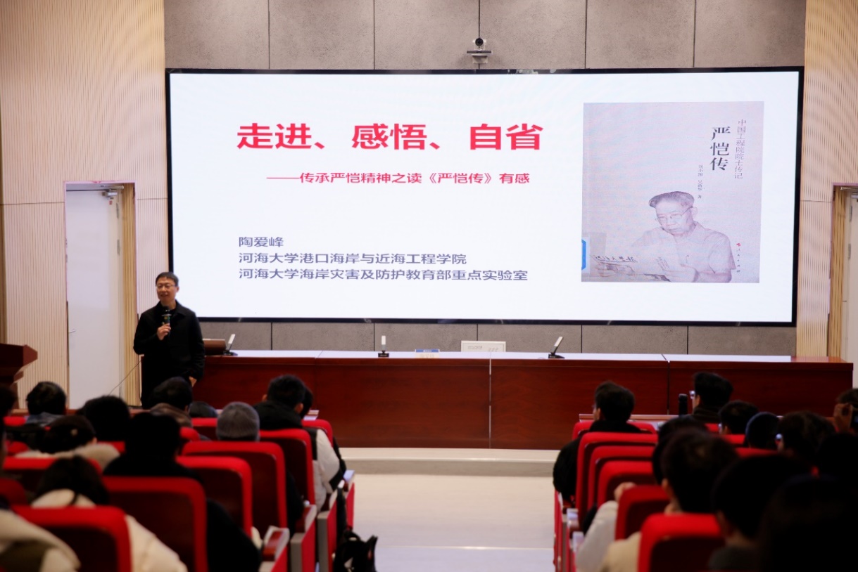 陶爱峰教授以《严恺传》为切入点,通过讲述严恺院士的求学报国、治水兴邦、把脉海疆的非凡经历,带领同学们深刻感受了严恺院士传奇的求学历程、严谨的治学风范。