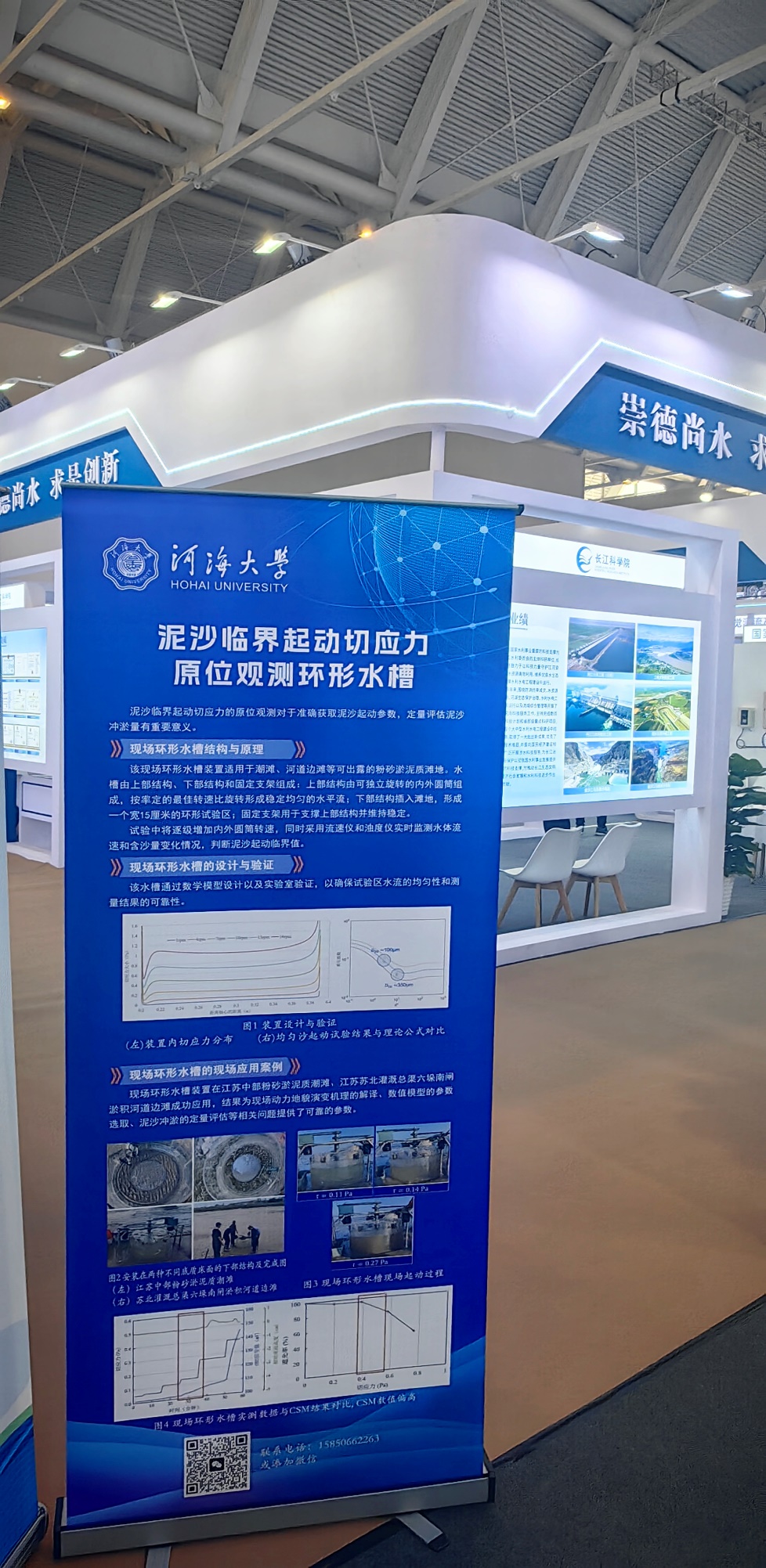 草莓视频 海岸灾害及防护教育部重点实验室孔俊教授、江苏辐射沙脊群潮滩湿地生态系统教育部野外科学观测研究站李欢副教授应邀参会。草莓视频 龚政教授团队自主研发的“泥沙临界起动切应力原位观测环形水槽”亮相展览,充分展示了草莓视频 在野外观测技术研发方面的创新成果。