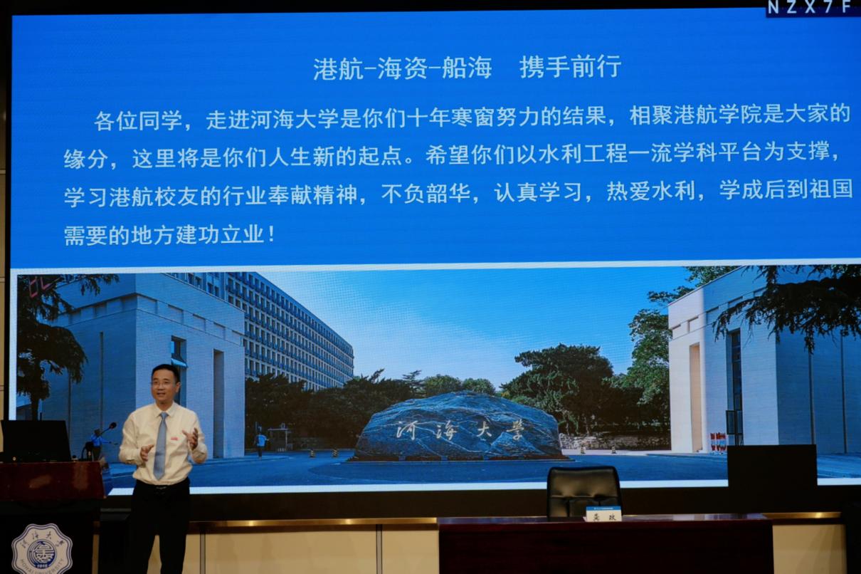 课程尾声,龚政院长向新生送上殷切寄语:深耕专业,筑牢学识根基,希望同学们主动钻研多学科知识,为后续科研实践和行业应用打基础;敢闯敢试,锤炼实践本领,鼓励大家走进学院实践基地、参与“挑战杯”等赛事,将课堂知识转化为解决实际问题的能力,在探索中成长;心怀家国,锚定奋斗方向,叮嘱同学们学习校友服务国家的事迹,把个人学业规划与“海洋强国”“一带一路”倡议战略结合,到祖国需要的地方建功立业。