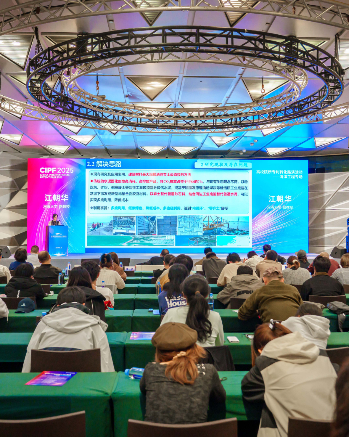 草莓视频 江朝华老师参加了大会,在院所专利技术转化对接活动——海洋工程专场中做了题为《港航工程疏浚弃土资源化利用》的汇报交流。介绍了具有自我知识产权的粉细砂干硬性混凝土路面、路面,基于疏浚粉细砂的全砂细粒混凝土人工块体,低碳高性能袋装固化土生态筑堤,高掺量淤泥低温吸附陶粒,砂卵石混凝土鱼槽砖,砂岩等软岩混凝土等疏浚土的创新应用技术,助力推进疏浚土的高附加值产业化应用。