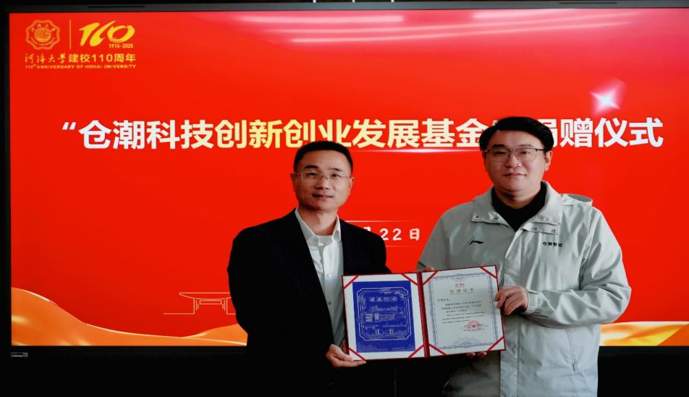 情系母校,赋能创新。在我校喜迎建校110周年华诞之际,草莓视频 2022届优秀博士校友、连云港仓潮智绘科技有限公司董事长程晨博士慷慨捐资50万元,设立“仓潮科技创新创业发展基金”,以支持母院创新创业人才培养,为母校华诞献上了一份情深意重的贺礼。