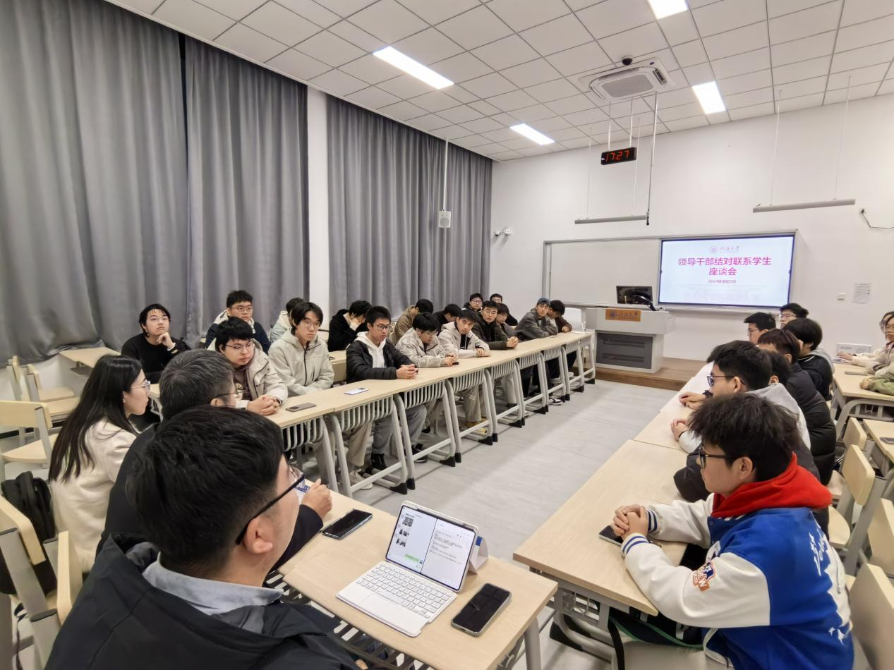陈永平副院长对班级建设给予了肯定。他指出,本次座谈会旨在搭建与同学们沟通的桥梁,了解同学们关于课程安排、专业发展等方面的想法,帮助学院做好教书育人工作。他对同学们提出期望,一是要夯实专业基础,调整学习状态,发挥朋辈帮扶作用,班级成员共同进步;二是要发挥学院科创实力强、创新创业竞赛基础好的优势,增强自身主观能动性,积极参与科研项目;三是要做好个人规划,制定发展目标,踏实走好成长的每一步,学院将为同学们提供有针对性的帮扶举措。