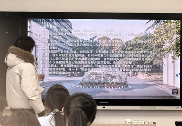 随后,实践团深入各年级班级开展主题宣讲,通过播放学校官方宣传片、定制PPT展示与学弟学妹互动答疑,向学弟学妹系统介绍了我校百年校史、“双一流”学科优势,并分享了高中备考方法、时间管理技巧与生涯规划建议,现场互动踊跃、反响热烈。