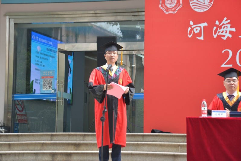 At the degree awarding ceremony, Dean Gong Zheng delivered a graduation speech, warmly congratulating more than 300 graduates of the college on their successful graduation, and paying high respects and  thanks to the teachers who worked hard for the graduates to grow up and become talents. Dean Gong raised three wishes for the graduates, who are about to start a new journey in life. First, we must inherit the excellent culture, not forget the initial heart, draw nutrition from the excellent traditional Chinese culture, consciously abide by social morality and professional ethics, and demonstrate the extraordinary excellence of being an inherit of water and a harbour and shipping person with practical actions; Second, we must keep in mind the school motto of Hohai, not forget the initial intention of studying, and internalize the spirit of the 16-character school motto into the heart and externalize it, and shine in the process of perfecting, enriching and surpassing ourselves; Third, we should fulfill the youth mission, not forget the initial intention of strengthening the country, take loving the motherland as the foundation and the foundation of our success, and closely link personal growth with national development, so as to forge ahead for the great rejuvenation of the Chinese nation.